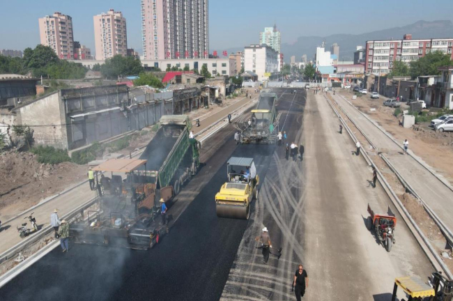 近日,山西省吕梁市交城县沙河东街道路改造工程的沥青摊铺作业展开。该工程是交城县加快建设和谐宜居城市的重点工作之一。目前,建设者们正铆足干劲,加紧施工,以看得见的变化推动交城县城市发展。