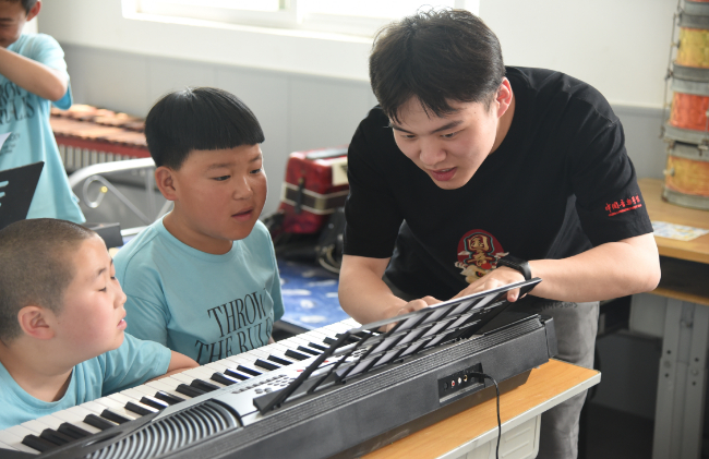 近日,由中国音乐学院教育学院14名学生组成的“润物有声,晋享其乐”大学生暑期社会实践团,走进山西省太原市阳曲县凌井店乡凌井店中心小学,为孩子们带去丰富多彩的音乐课。