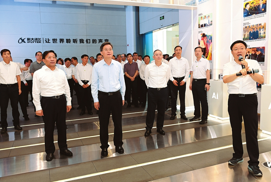 7月18日,山西党政代表团在科大讯飞公司考察人工智能产品研发和行业应用落地情况。(记者史晓波摄)