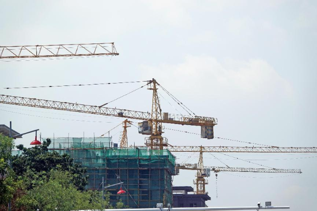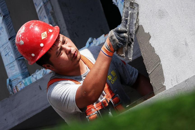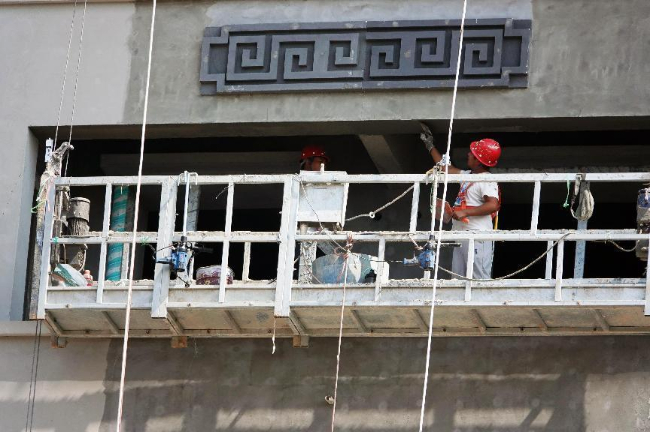 建筑工人正在开展作业。(高新生 摄)