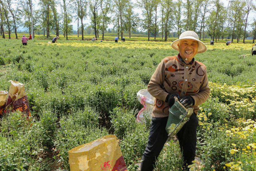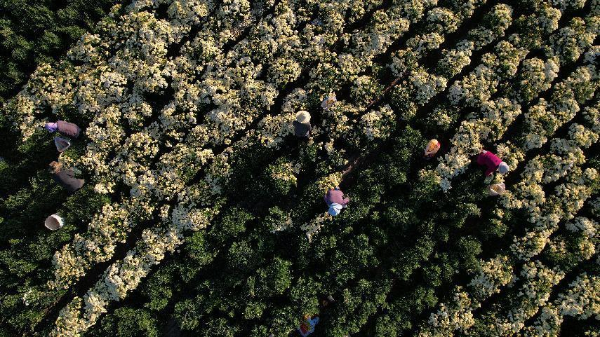 采摘菊花。 (张建辉 摄)