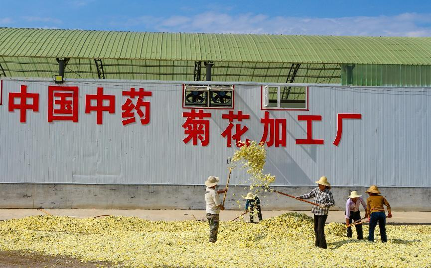 中国中药控股有限公司中药材资源中心品牌策划部经理徐大卫表示,由于菊花采摘后必须趁鲜杀青、烘干,2022年公司投资350万元在晋西北孵化园定制50米网带式杀青烘干设备及设施。目前,孵化园每天可加工鲜菊花100吨,实现统一加工、全过程可控制,打破传统加工方式造成的质量不均一现象。
