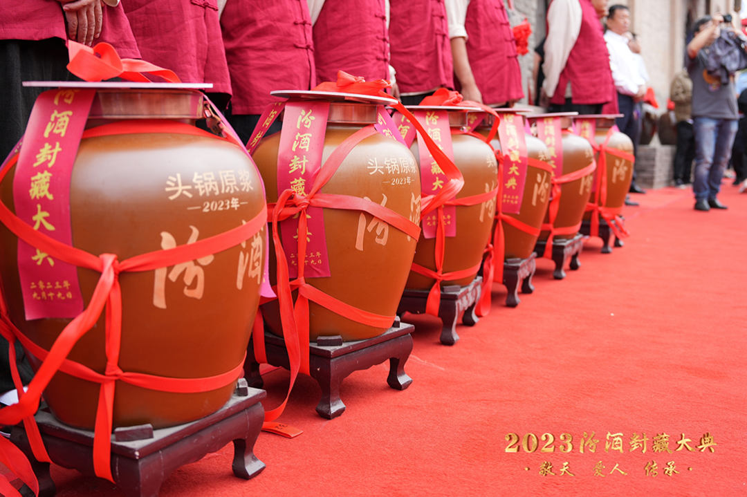 2023汾酒封藏大典分为“天佑苍生,清香永续”“厚德载物,工匠守恒”“岁月流金,礼遇经典”三个篇章,举行了敬天仪式、拜师仪式、2023汾酒“工匠人物”颁奖活动、2023汾酒秋酿头锅原浆封藏仪式等。