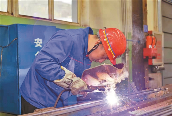 刘宁正在焊接设备。 (照片由晋中市总工会提供)