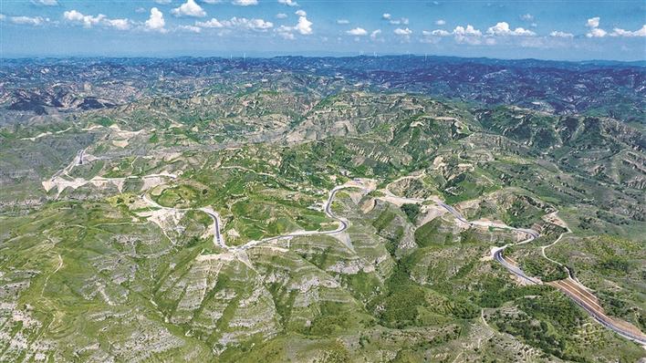 图为无人机拍摄的“黄河一号”旅游公路石楼辛关—下洼段。 记者 刘亮亮 摄