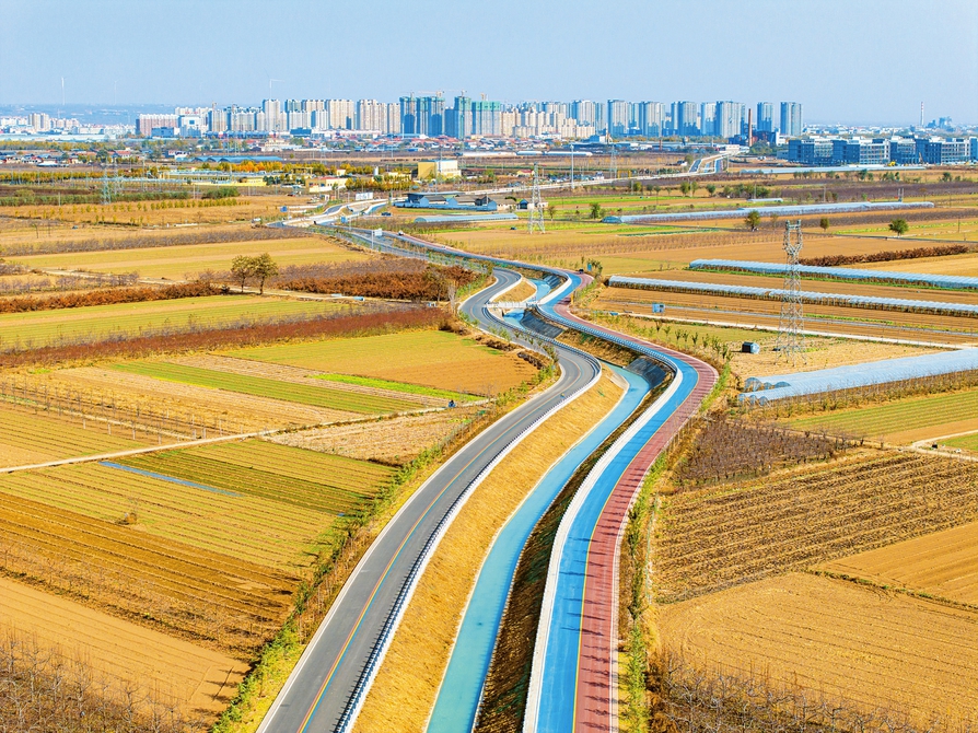 11月23日,涑水河临猗段旅游公路和两侧田园风光交相辉映。近年来,临猗县着力打造沿涑水河田园风光示范带,通过对沿涑水河流域内6个乡镇的山水林田湖草沙等进行治理和修复,盘活生态、文旅、康养、农业等相关产业要素。
