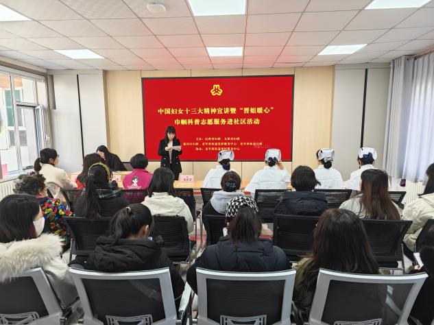 12月4日,由山西省妇联、太原市妇联开展的中国妇女十三大精神宣讲暨“晋姐暖心”巾帼科普志愿服务进社区活动,走进太原市迎泽区老军营街道,面向妇女群众宣讲中国妇女十三大精神,并提供健康咨询及义诊等服务。