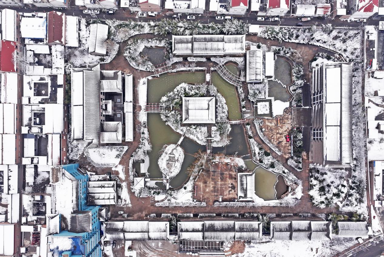 俯瞰绛州澄泥砚文化园雪景。(高新生 摄)