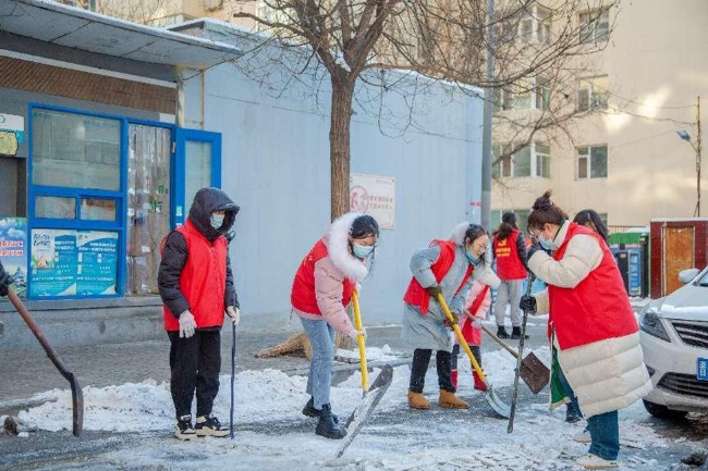 12月17日,太原市尖草坪区文明办组织大批志愿者走上街头清扫积雪,开展“扫雪除冰”志愿服务活动,减少积冰给群众出行带来的影响。