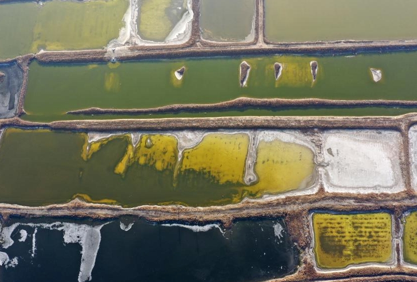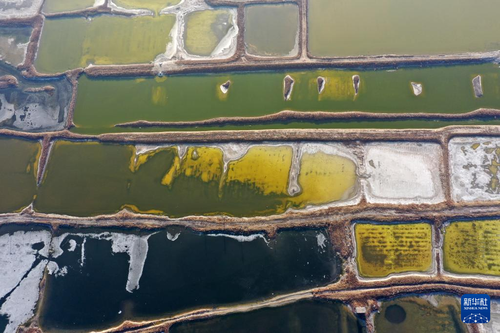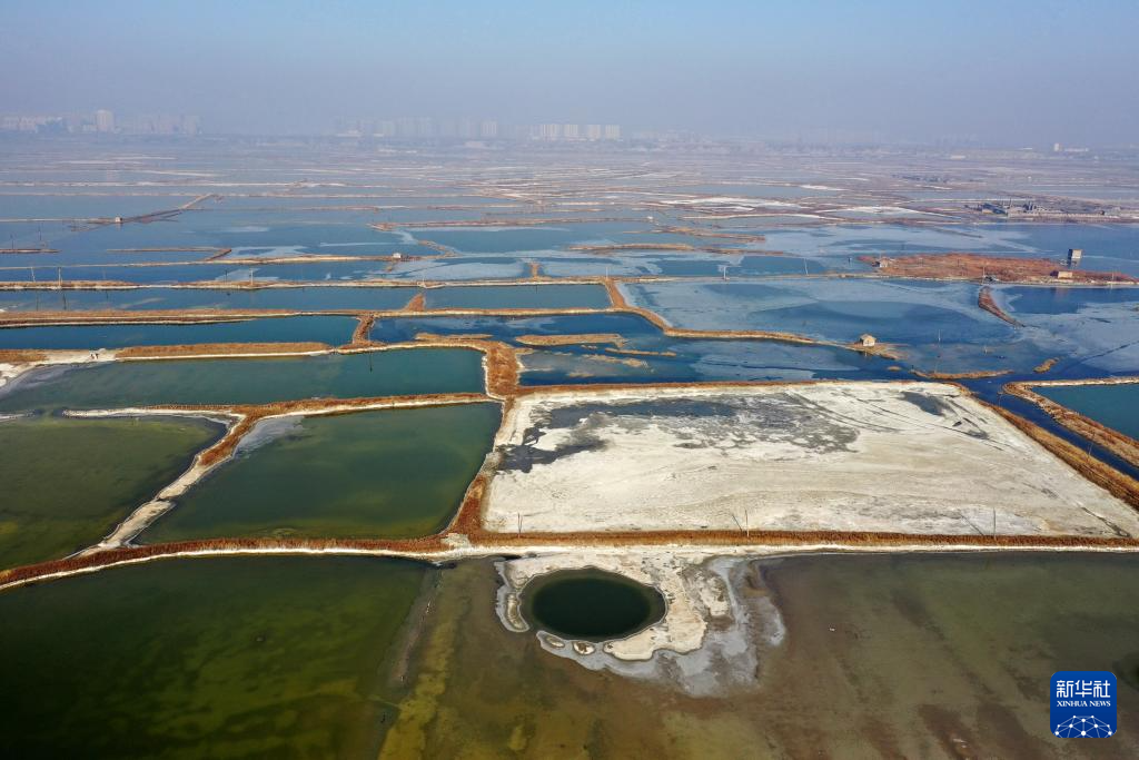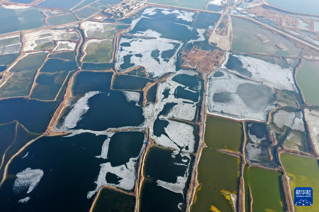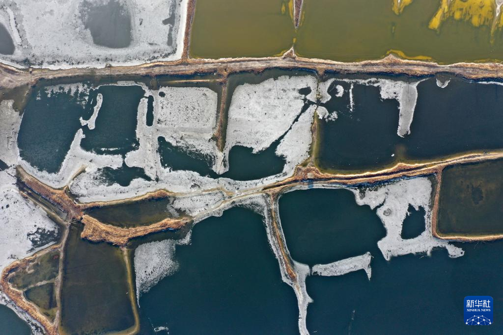 运城盐湖一角(1月10日摄,无人机照片)。