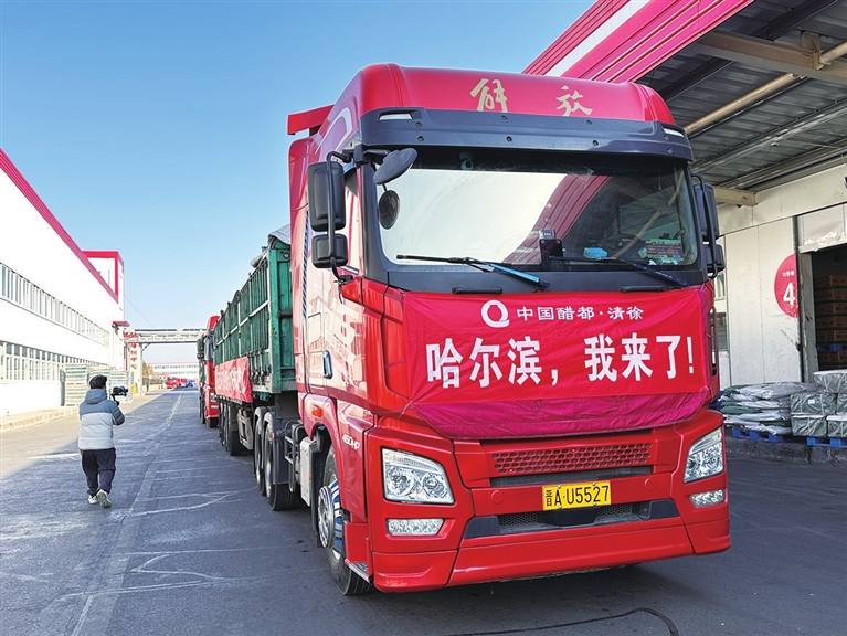 图为满载太原醋礼的货车启程开往哈尔滨。