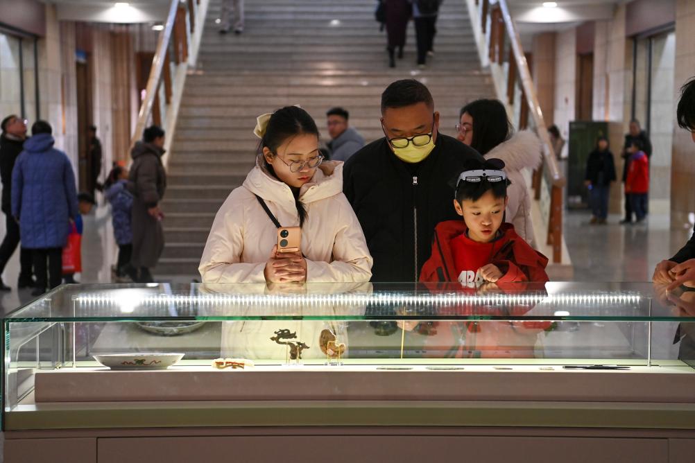 2月7日,游客在山西博物院参观。