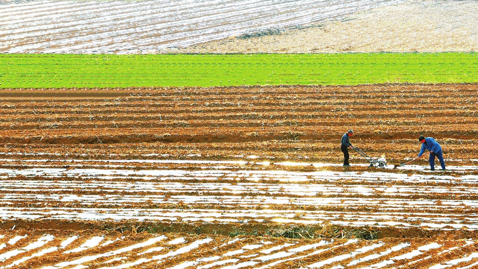 3月6日,村民在垣曲县古城镇峪子村田间覆盖地膜,移栽萝卜籽苗。人勤春来早,春播正当时。峪子村在邻村英言村的影响下,发展蔬菜籽特色产业,所种的萝卜籽按照订单种植,由省外一家种子公司负责收购,仅此一项亩均可收入4000余元。崔松良摄