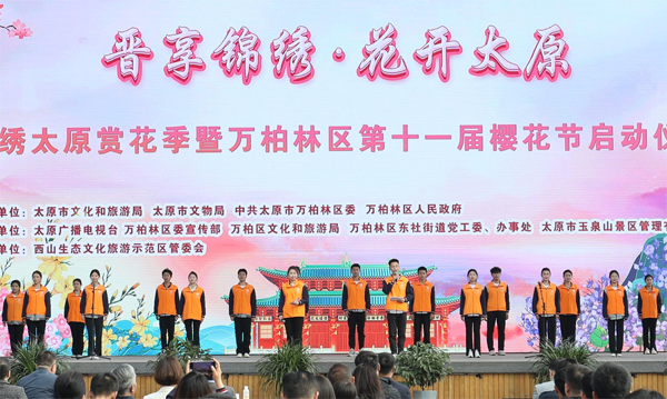 “晋享锦绣·花开太原” ——锦绣太原赏花季暨万柏林区第十一届樱花节启动仪式4月8日在太原市玉泉山城郊森林公园举行。约5万株樱花进入盛花期,开启了“锦绣太原赏花季”。