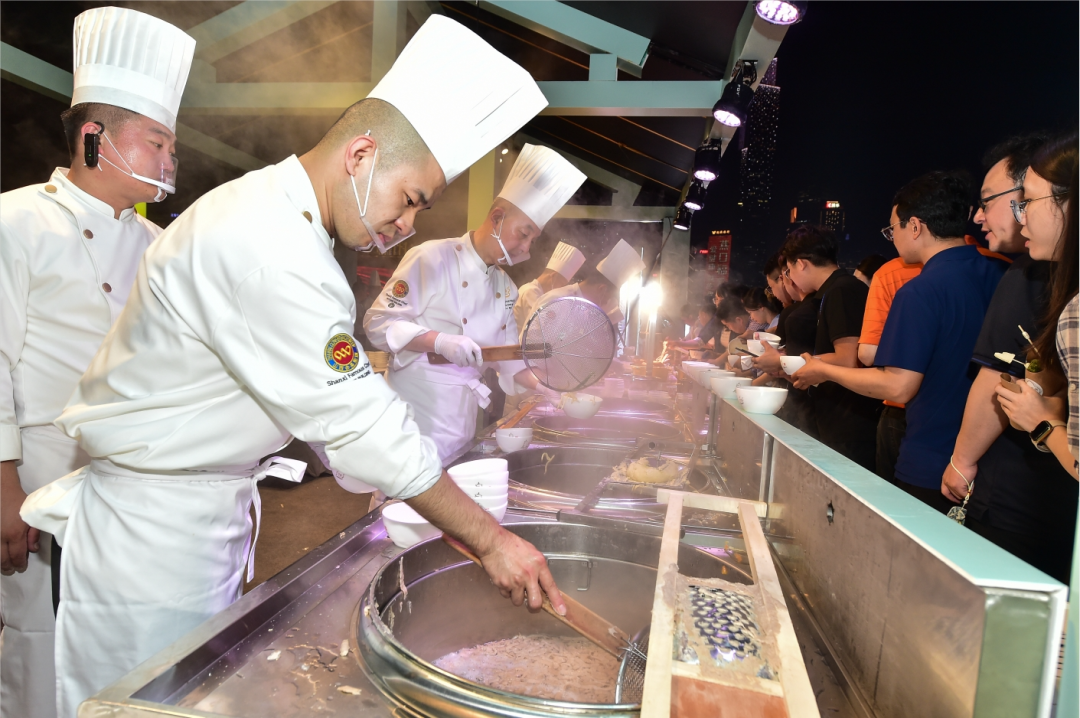 祁县的玻璃器皿,盛着杏花村的汾酒。清徐的老陈醋,倒进现场煮出的山西刀削面里。大同的黄花,晋北的杂粮,平遥的漆器……与会者或津津有味地品尝,或饶有兴趣地端详。