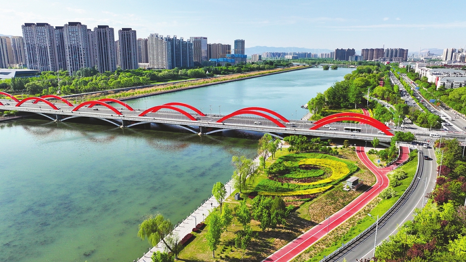 太原汾河景区漪汾桥段景色旖旎-新华网
