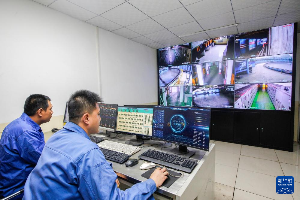 2022年9月14日,在山西焦煤集团汾西矿业水峪煤业选煤厂,工作人员通过远程监控查看设备运转情况。