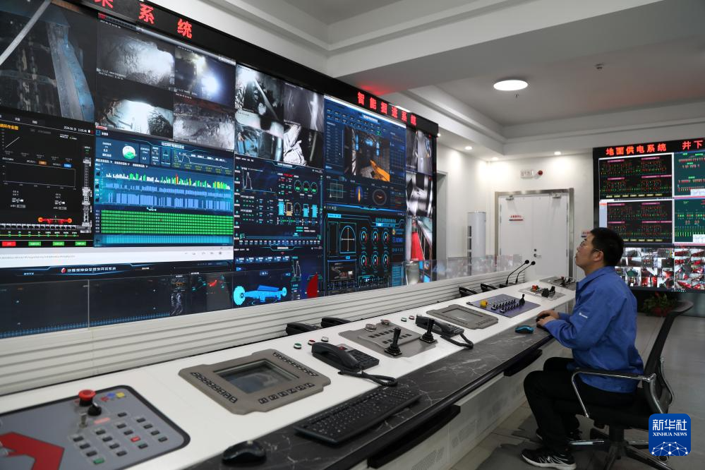 2024年6月19日,在山西焦煤集团西山煤电马兰矿,工作人员对井下设备进行远程操控。