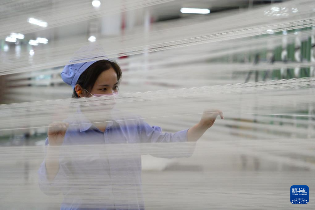 2024年3月28日,工作人员在位于河南省平顶山市的中国平煤神马集团帘子布发展公司布机车间检查丝线情况。位于河南平顶山的中国平煤神马集团积极延伸煤炭产业链,普通的煤炭被加工成众多高附加值衍生产品。