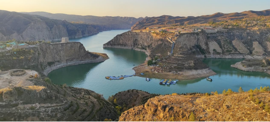 在黄河入晋第一湾——山西偏关老牛湾,黄河与长城实现了从“相遇”到“握手”,从空中俯瞰,峡谷两岸壁立千仞,黄河蜿蜒奔流不息,风景壮美如画。