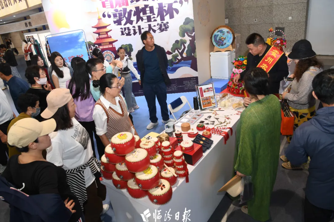 气势恢宏的敦煌国际会展中心B馆里,“匠心传承、创意绽放——非遗及文创精品展”人潮如织。乡宁紫砂壶、尧都古陶、蒲县烙画等临汾非遗及文创产品展架前,不时有观众驻足。