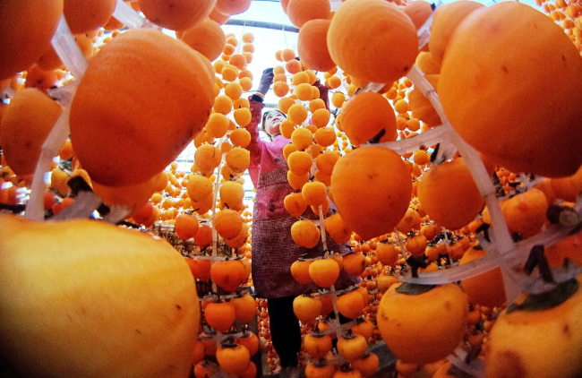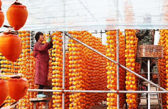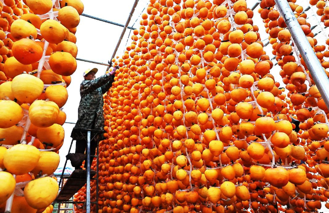 金秋时节,富农“柿”业正兴隆。近日,山西省新绛县柿子喜获丰收,柿农们正加紧将收获的柿子削皮加工、上架晾晒。