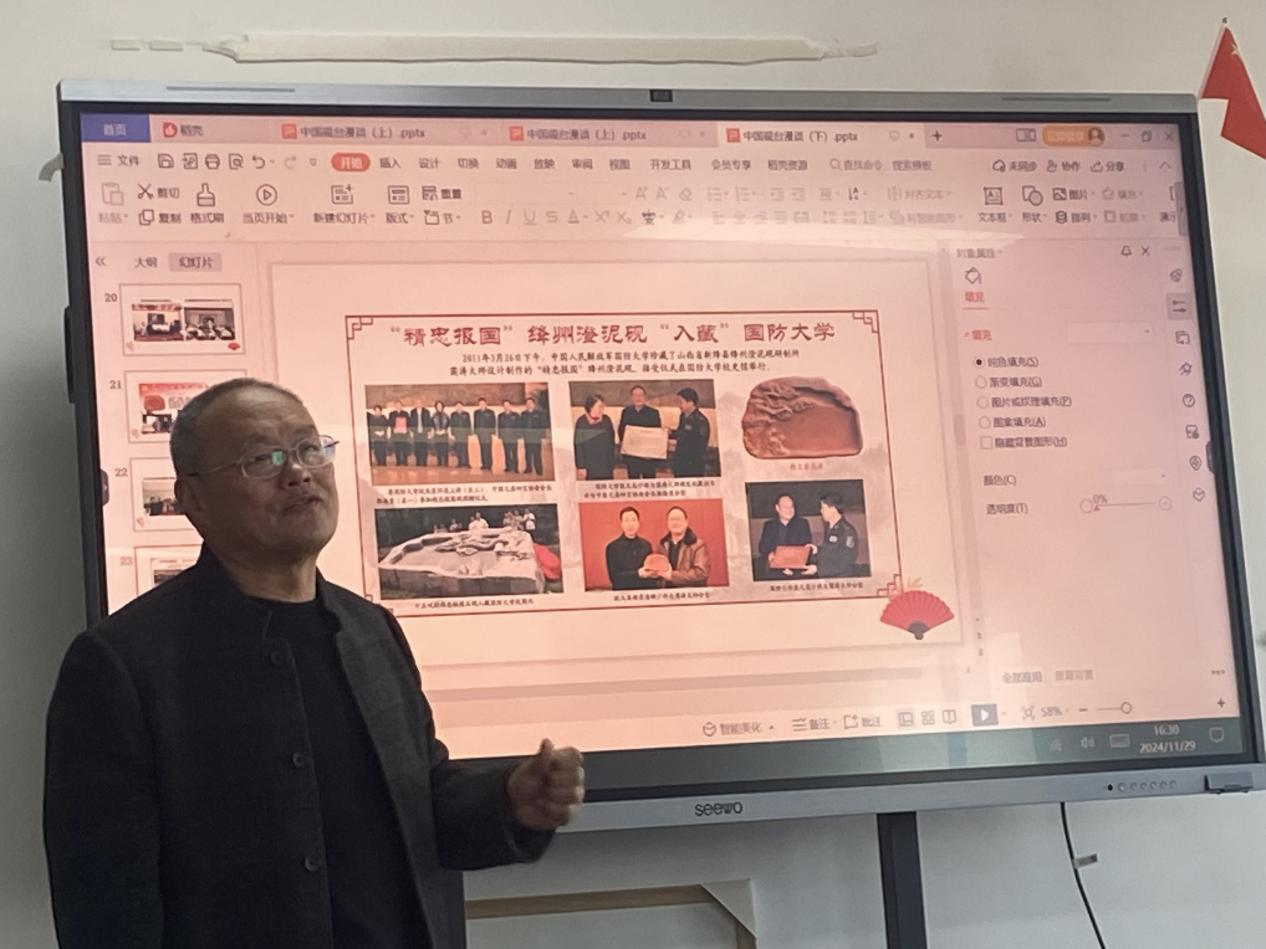 讲座中,蔺涛以通俗易懂的方式,为学生们讲解了绛州澄泥砚的历史渊源、发展脉络、工艺流程等,揭开这项古老技艺的神秘面纱。