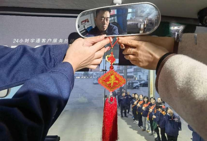 当天下午,在华阳集团运输分公司客运二中心检车台旁,女职工安全协管员、基层单位班组长及职工家属静静等待驾驶员收车平安归来。当一辆辆客运车驶回检车台时,现场响起热烈的掌声。随后,在场的职工家属和驾驶员一起拿上早已准备好的平安符,郑重地系在客运车上。小巧精致的平安符,承载着家人沉甸甸的牵挂与满满的祝福。