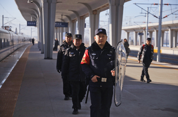 朔州东站铁路公安将持续聚焦旅客安全出行,齐抓共管、全警出击,保障春运期间铁路运输生产安全。(李泽岐)