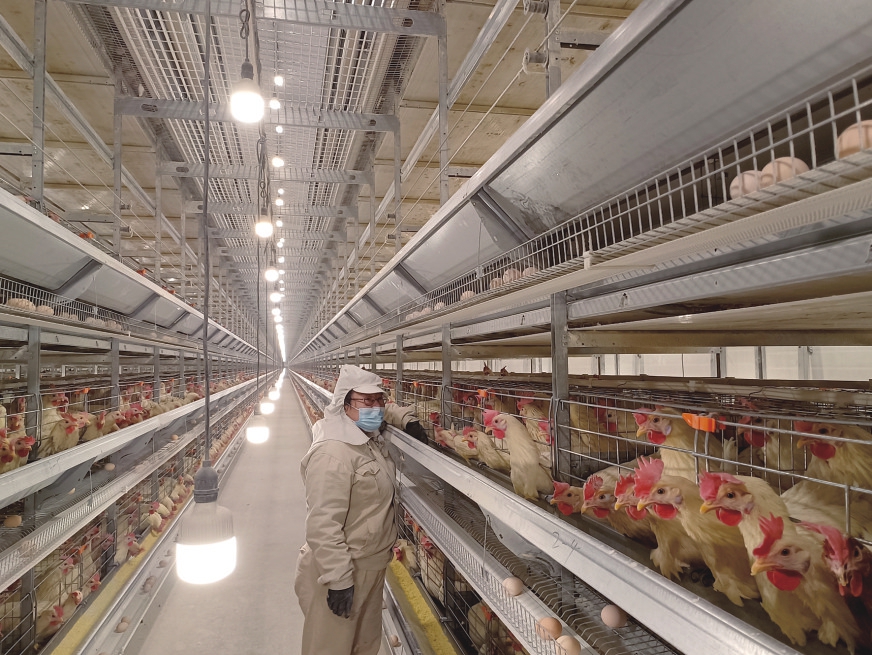 穿上无菌服,陈璐带记者参观鸡舍。墙面是彩钢夹芯板,耐腐、防火,保温性能卓越,有效保障鸡舍一年四季温度恒定。鸡笼表面是进口铝锌合金涂层,显著降低破蛋率、污蛋率。鸡舍内安装有智能环境控制系统,实时显示和控制鸡舍内温度、湿度、二氧化碳浓度、光照、通风等环境指标。“一旦某一项指标低于或者超过设定范围,系统就会启动各项设备,直至指标恢复正常。”陈璐说。