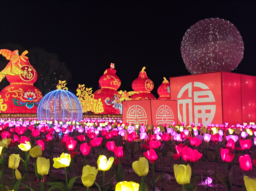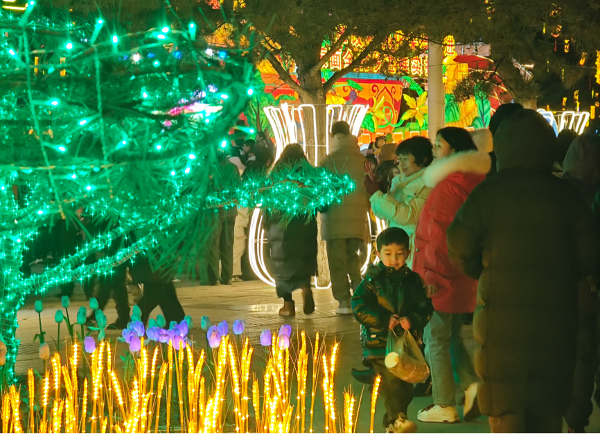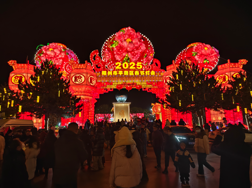 自腊月二十三启幕的“紫塞雄城·幸福平鲁”迎春大型灯展,在元宵夜迎来高潮——数万市民、游客扶老携幼漫步灯河,在“中国红”与“科技蓝”的碰撞中,品味传统年俗与现代文明的交融之美,在流光溢彩中感受着“幸福年”的脉动。