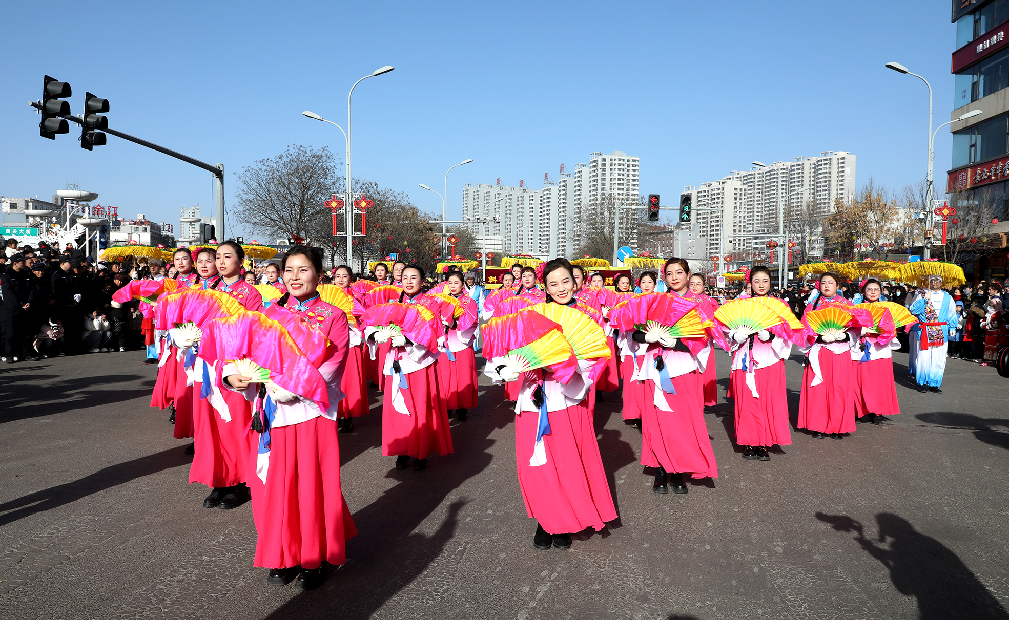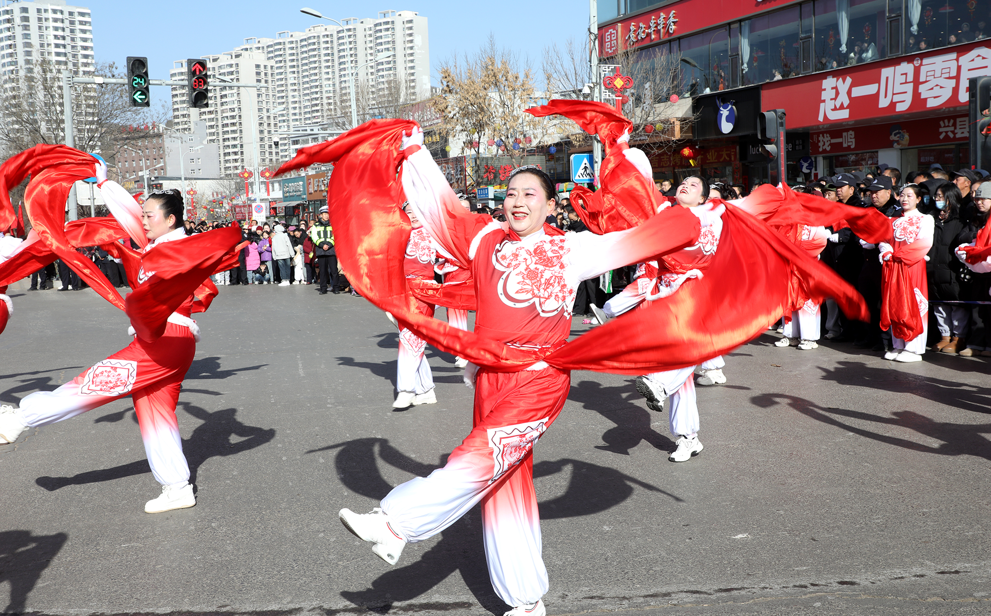 活动现场,秧歌队员们身着节日服装,手持彩绸、扇子等道具,在铿锵有力的锣鼓声中登场。花车、秧歌、旱船、舞龙等一批传统民俗文化节目一路走、一路舞、一路演。
