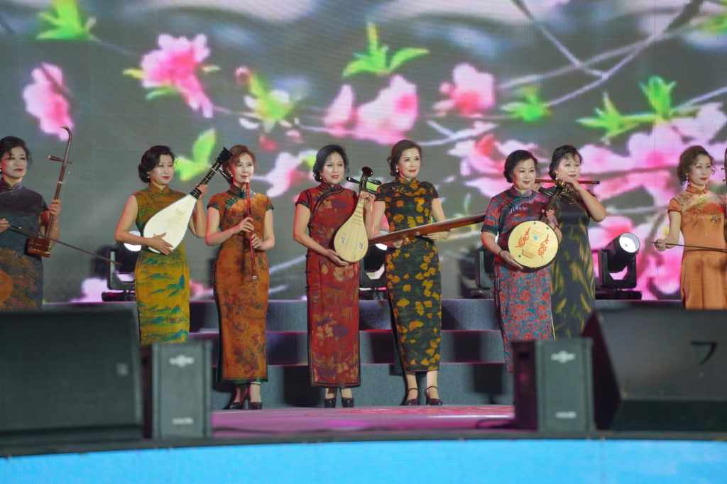 参赛选手以乐器为道具,展现旗袍古韵。