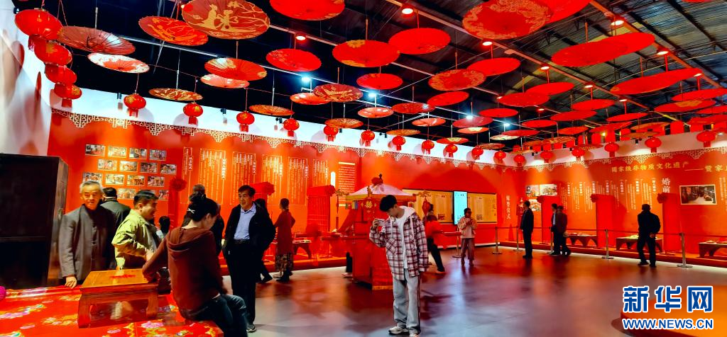 游客在孝义贾家庄,体验非遗“汉族婚俗”。新华网 发