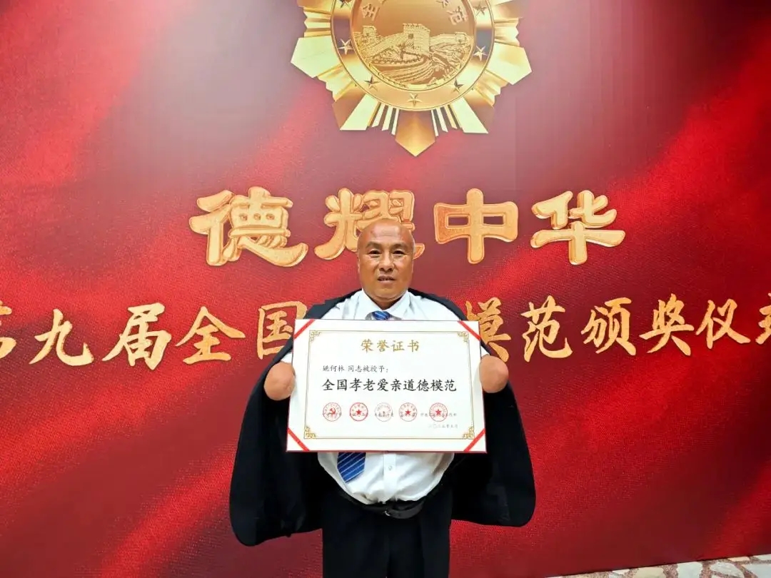 “这会儿还是很激动。能得到这么高的荣誉,真是没想到。”5月23日晚,电话那头的姚何林声音高亢。当天,全国精神文明建设表彰大会在北京召开,获授第九届全国道德模范“孝老爱亲模范”的姚何林感慨万分:“这么多年,咱只是干了自己该干的事、能干的事,但今天我更加明白了这个道理:心若向阳,人生自会发光。”