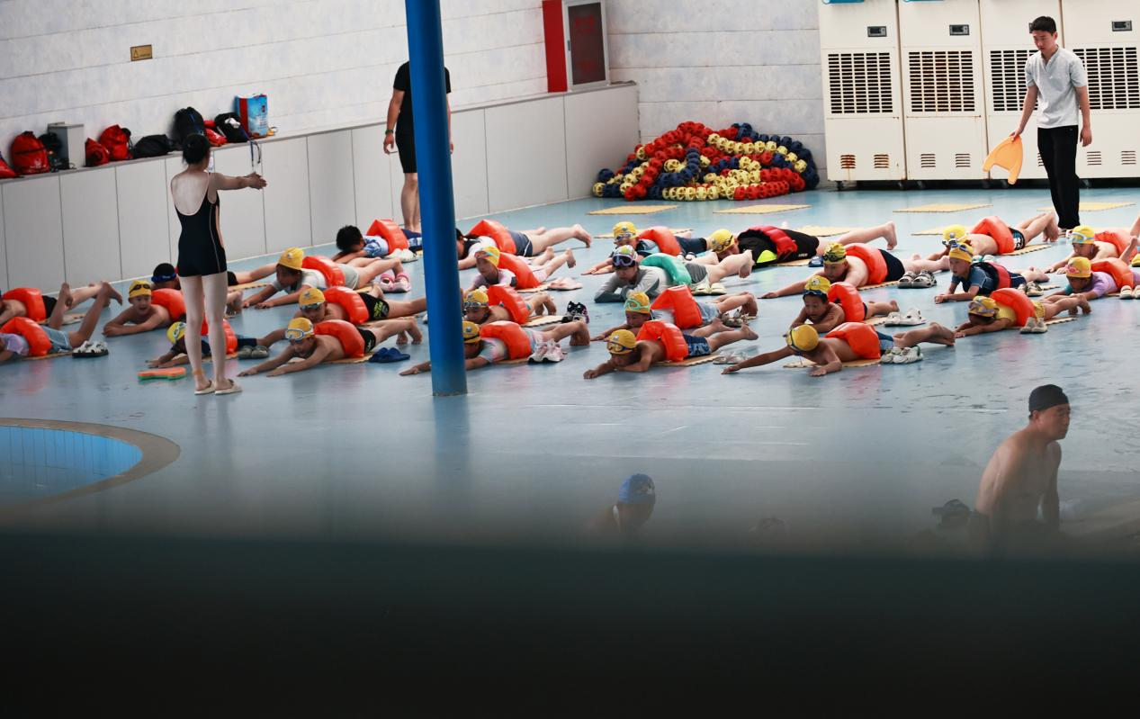 走进新绛县游泳馆,可以看到孩子们认真练习的身影。在专业教练的指导下,吸气、蹬腿、划水、换气……初学者从克服对水的恐惧到初步掌握漂浮、滑行;进阶学员则不断打磨着蛙泳、自由泳等技术动作。水花四溅间,孩子们不仅解锁了清凉度夏的新方法,更是习得一项终身受益的技能。