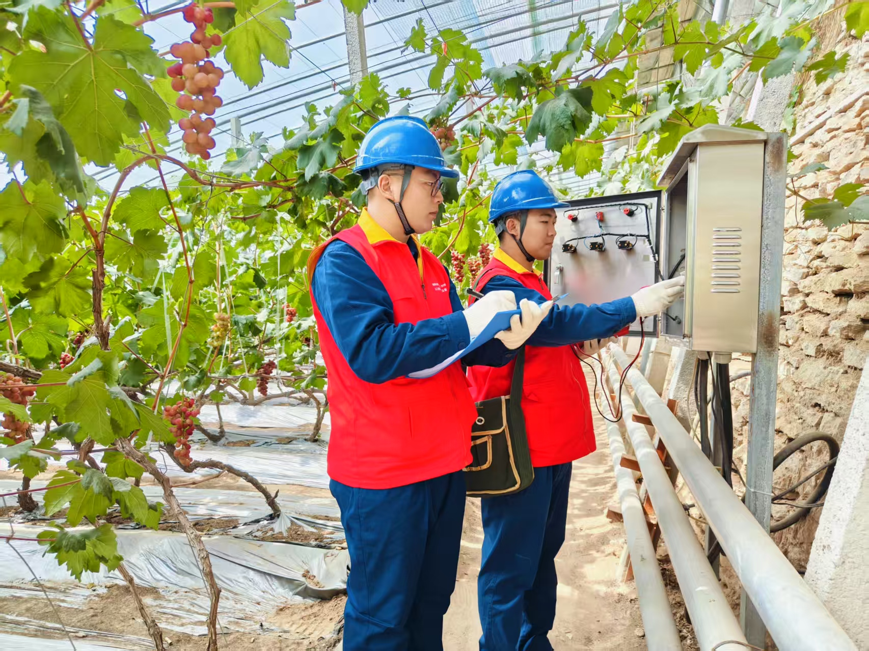 正值旅游旺季,偏关县供电公司员工日常在老牛湾景区巡视台区设备,并为景区内的民宿逐一排查用电设备和线路,保障安全用电。