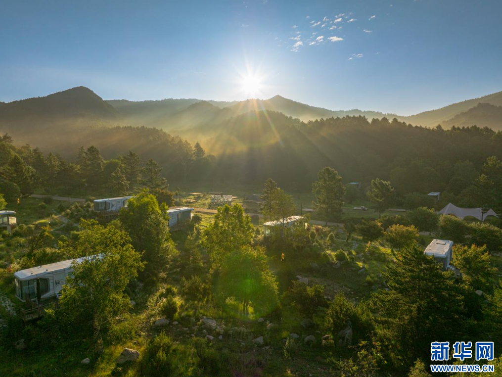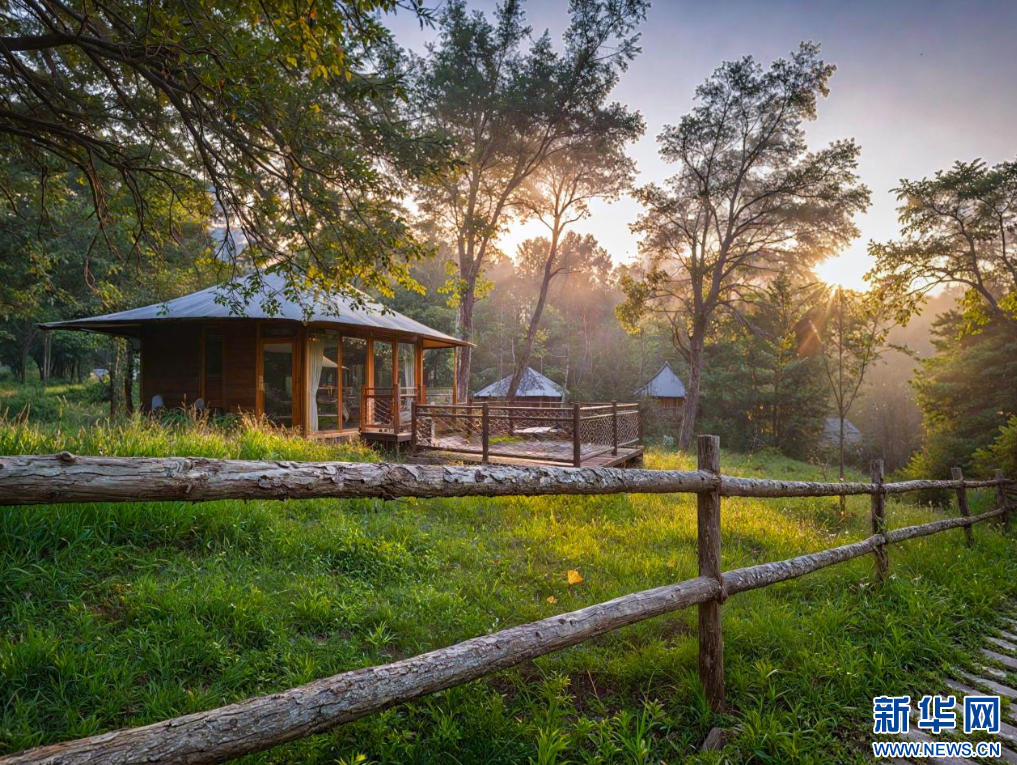 帐篷酒店外,吸一口大东沟的清晨,肺里像住进整座青山。新华网 发