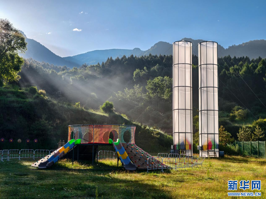 晨雾漫过,草地上的彩色滑梯鲜亮起来,静候孩子们的欢笑。新华网 发