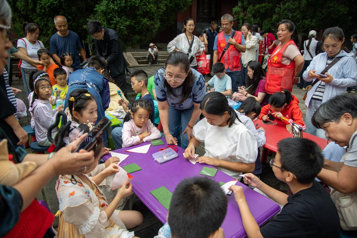 本届庙会推出多项文化创新项目,电子民乐与经典诗词吟唱相融合;“唐僧师徒”惊喜现身,与游客猜谜对诗、趣味互动;“古人”漫步亭台楼阁间,与游客即兴对诗、共咏经典等。同期开展的非遗市集汇聚剪纸、面塑、脸谱等传统技艺,传承人现场展演教学,游客可边逛边学,深入体验匠心传承。