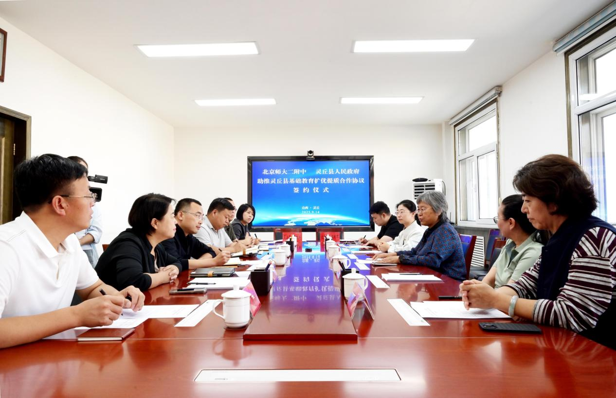 根据协议,双方将围绕灵丘县基础教育发展需求,依托北京师大二附中在师资培养、教学研究和课程建设等方面的优势资源,通过师资培训、教学研讨、资源共享和学生交流等重点举措,助力灵丘提升中小学教育质量,推动区域教育优质均衡发展。
