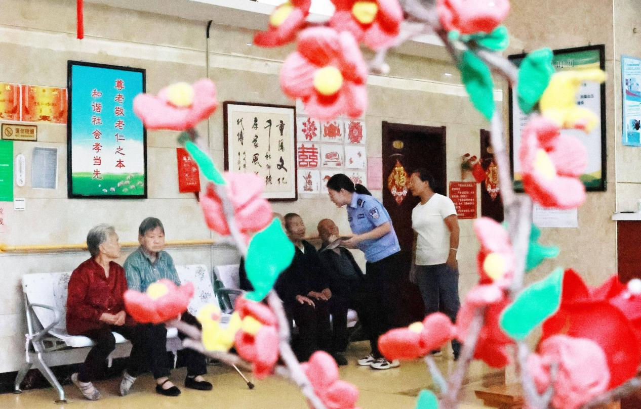 司法人员为老人宣讲工作站相关职能和法律法规。(高新生 摄)