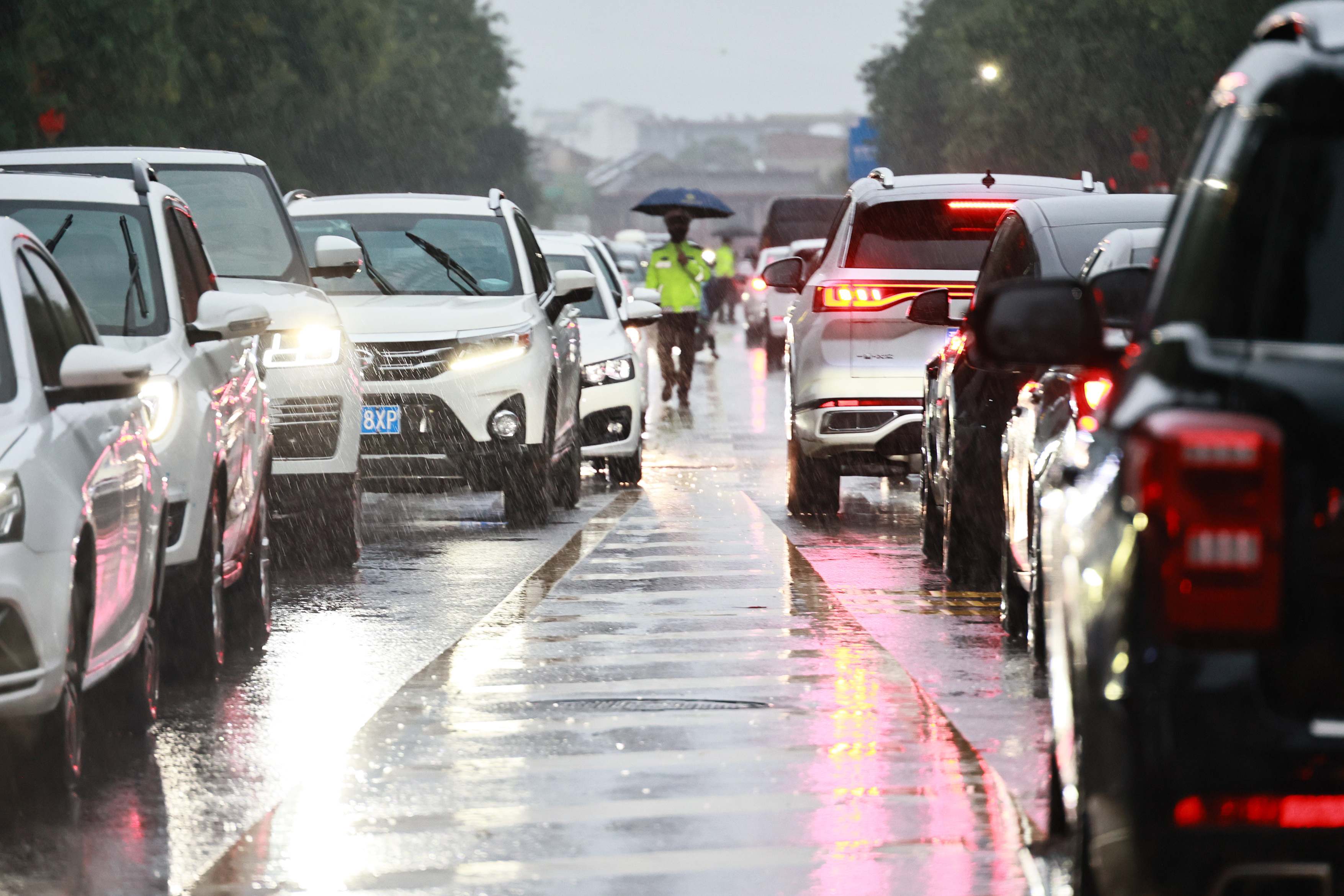 雨中的守护。(高新生 摄)