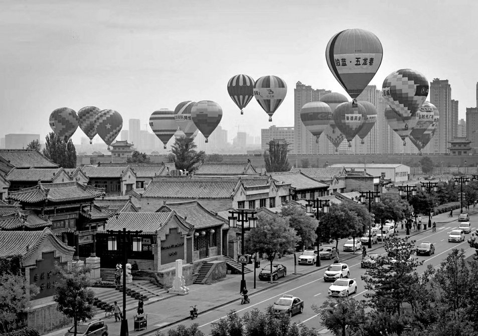 在刚刚过去的这个夏季,每个周末的古城太平楼西北侧的草坪上,都有热气球升空体验项目。