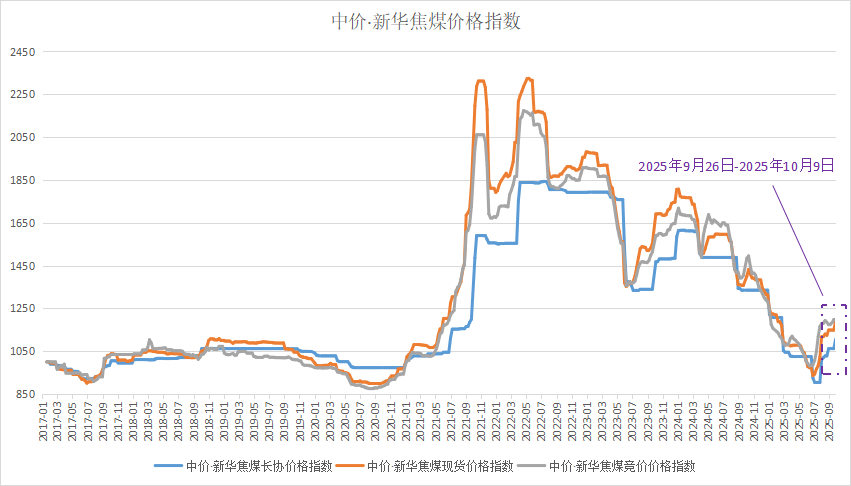 本期(2025年9月26日-2025年10月9日)中价·新华焦煤价格长协指数偏强运行。
