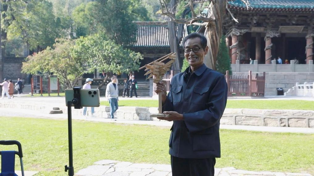75岁的王永先,与古建筑相伴了53年。2020年,他拿起手机,在山西太原晋祠圣母殿前开始用短视频讲解斗拱。复杂的术语被他转化成家常话,意外收获了大量关注,成了大家熟悉的“斗拱爷爷”。(新华社记者张哲)