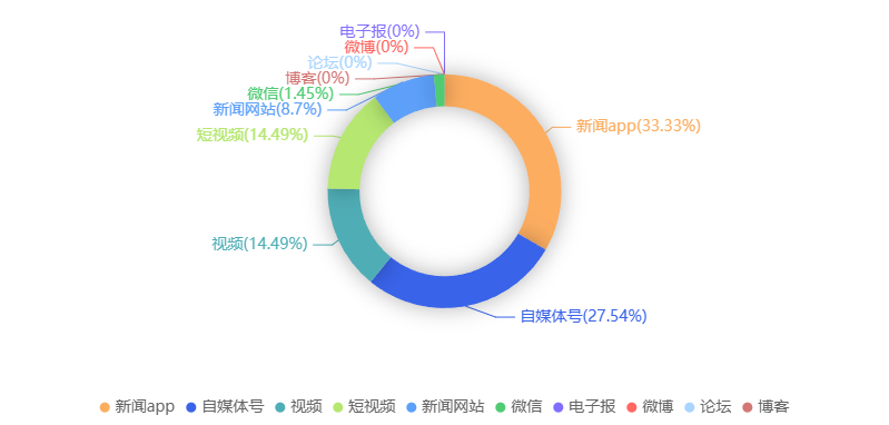 截至目前,该文章在互联网上传播总量共69篇。各信源的信息发布情况中,新闻APP占比最大,其次是自媒体号。(数据来源:新华睿思·数媒智慧分析平台)