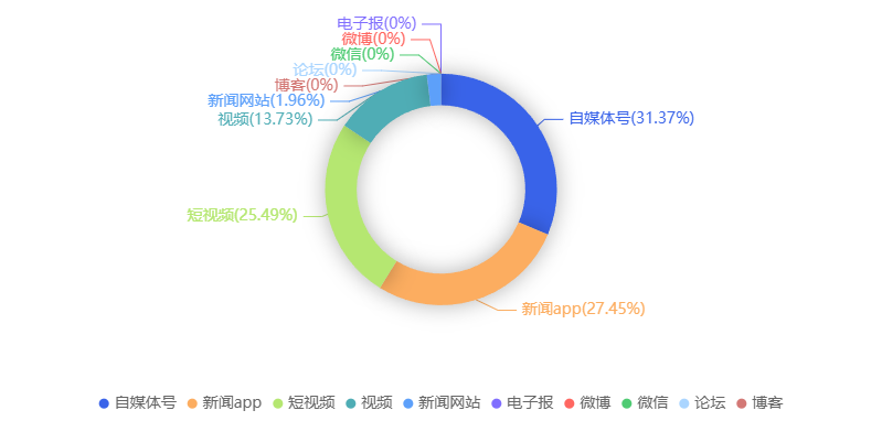 截至目前,该文章在互联网上传播总量共51篇。各信源的信息发布情况中,自媒体号占比最大,其次是新闻APP。(数据来源:新华睿思·数媒智慧分析平台)
