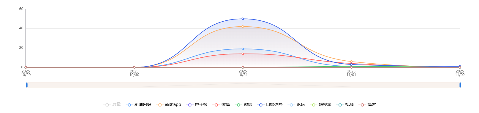 截至目前,该文章在互联网上传播总量共59篇。各信源的信息发布情况中,自媒体号和新闻APP占比最大。(数据来源:新华睿思·数媒智慧分析平台)