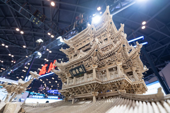 非遗文化展区内,完全依靠榫卯结构复刻的飞云楼模型巍然挺立,绛州澄泥砚古朴雅致,河津琉璃晶莹璀璨……一件件非遗精品,在这里,书写着“工匠精神”的时代篇章。